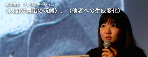 私たちの身体も皮膚によって限定されるものではなく、身体とその周りにある環境までもが地続き・情報のサーキットになっているという前提で、そのすべてを「精神」と呼んでしまおうというのがベイトソンの立場なのですが、問題は、こういう開放システムの作動を私たちはいかにして経験できるのか、ということだと思います。つまり意識の閉塞に苦しむ人に、「それは誤謬なんだよ、すべては情報のサーキットとして連続しているんだよ」と言ったところでどうしようもない。実際にその開放システムを生きているということを経験できるようにならなければならないわけです。このような経験を与えるような、いわば意識の閉塞から抜け出すための処方箋づくりはどのような作品や装置によって可能なのでしょうか。先ほどのカウフマンの作品は、私たちが抱える閉塞的な部分と、すべてがサーキットとして連続している部分、あくまでもその両方のレイヤーを見せるという意味では成功していると思いますが、より端的にベイトソン的な精神の開放システムを経験させることは、作品としてどういうかたちで可能なのでしょうか。この問題をぜひ今日の討議のひとつの主題として提示したいと思います。特にこのベイトソン的な作品の可能性については、ドミニク・チェンさんがソフトウェア開発を通じて試みていることだと推測しています。